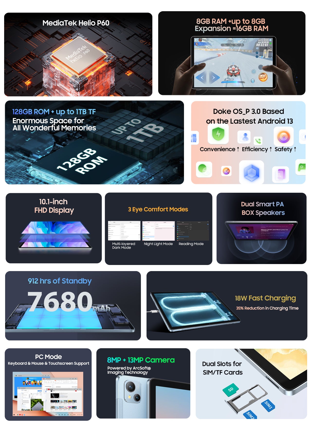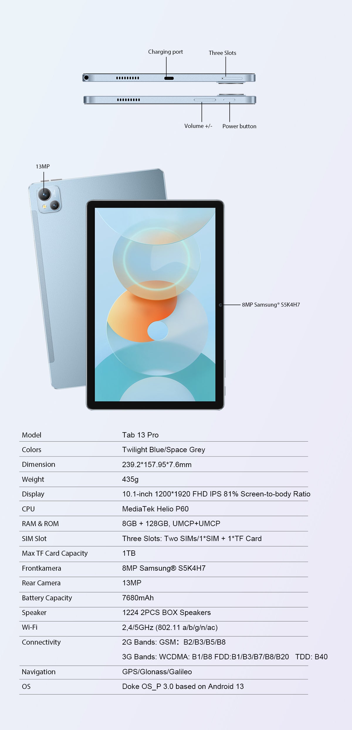 Blackview Tab 13 Pro 10.1'' MediaTek Helio P60 8GB+128GB 7680mAh Android 4G Tablet
